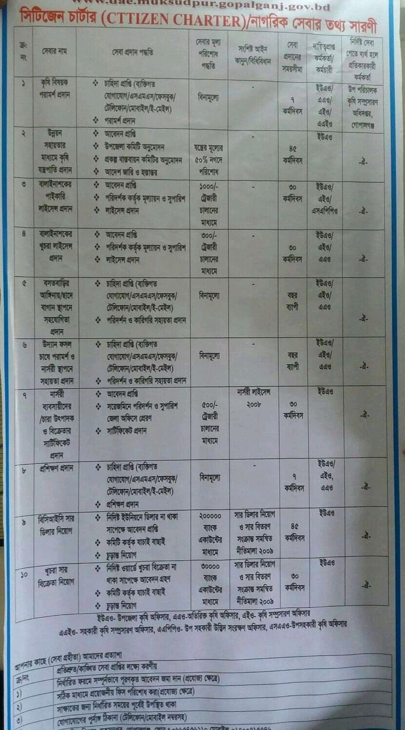 দায়িত্বপ্রাপ্ত কর্মকর্তাঃ উপজেলা কৃষি অফিসার, কোটালীপাড়া, গোপালগঞ্জ।